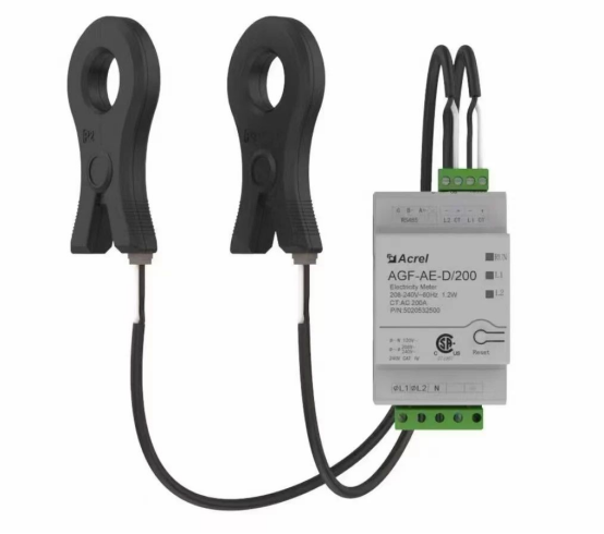 可搭配安科瑞AGF-AE-D/200導軌式智能電表,應用于小體積配電箱,AGF-AE-D/200 原裝互感器裝不下,用羅氏線圈精度低、成本高,可采用該款超薄電流互感器,方便安裝,輕松搞定,適用于北美裂相配電系統,獲CSA(與UL互認)認證。
