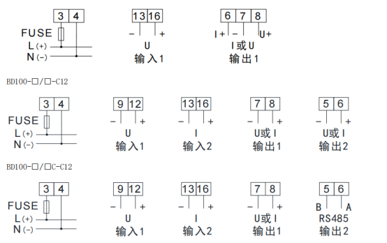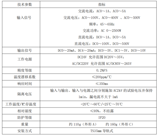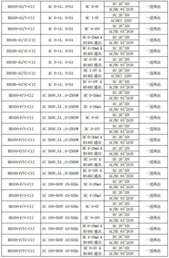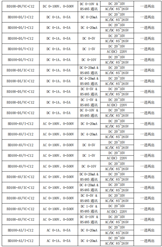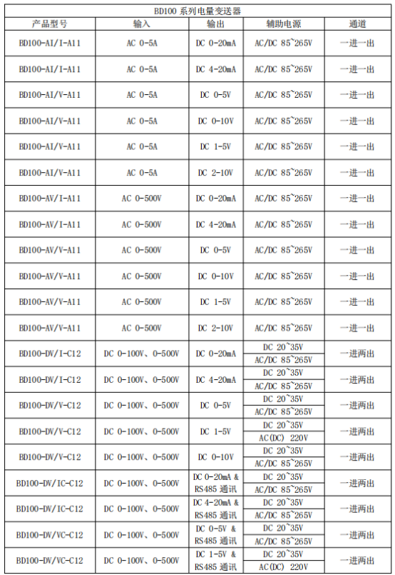 BD100 系列電力變送器是一種將電網中的電流、電壓電參量,經隔離變送成線性的直流模擬信號或數字信號裝置。產品符合 GB/T13850-1998、IEC-688 標準。
