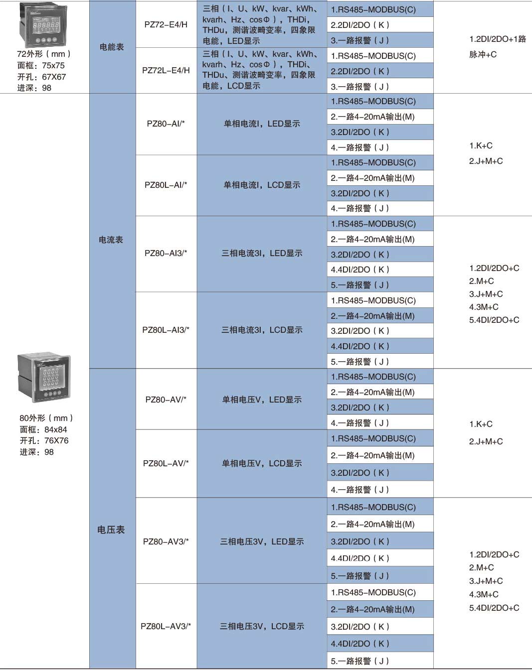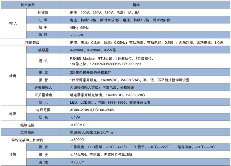 該系列儀表采用交流采樣技術,能分別測量電網中的電流、電壓、功率、功率因數和電能等參數。可帶RS485通訊接口、模擬量數據轉換、開關量輸入/輸出等功能,實現電力參數、電氣元件工作狀態的遠程傳輸,便于后臺監控系統集中檢測。