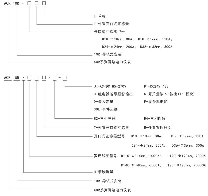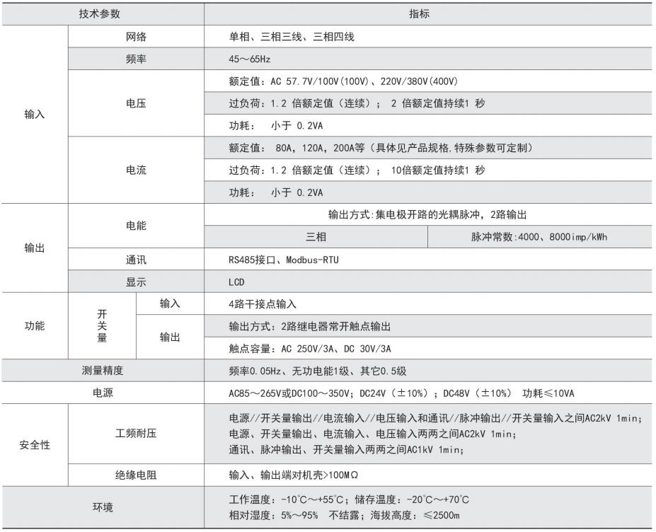 外置開合式互感器的導軌式多功能電力儀表,適用于冶煉、鋼鐵、電焊、半導體等高能耗行業的節能改造工程,也適用于分布式光伏并網柜的功率監測、電力需求側管理等應用。具有無需拆一次母線、接線簡單方便、施工安全,為用戶節約改造成本、提高效率等特點。它集成全部電力參數的測量(如單相或者三相的電流、電壓、有功功率、無功功率、視在功率、頻率、功率因數)以及電能監測和考核管理。同時它具有多種外圍接口功能可供用戶選擇:帶有RS485通訊接口,采用MODBUS-RTU協議可滿足通訊聯網管理的需要;帶開關量輸入和繼電器輸出可實現斷路器開關的“遙信”和“遙控”的功能,采用LCD顯示界面,通過面板按鍵來實現參數設置和控制,非常適合于實時電力監控系統。