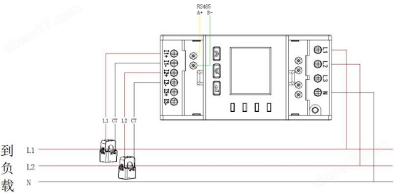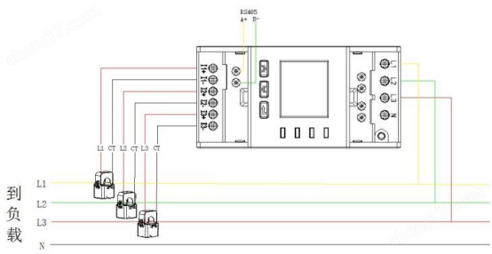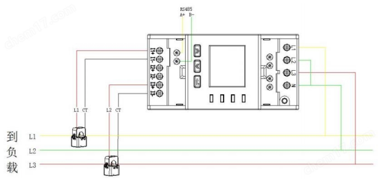圖5ADL400N-CT三相三線經互感器接入(此接法僅限于三項平衡時)(儀表設置為3P4L)