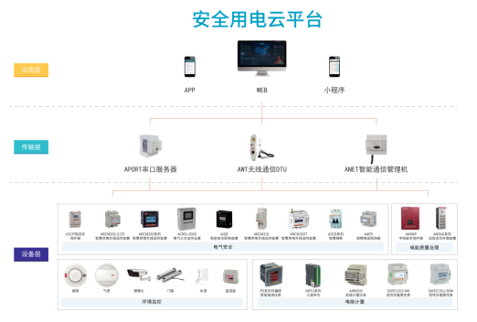 智慧安全用電管理云平臺將電力物聯(lián)網(wǎng)技術(shù)、用電安全技術(shù)與云平臺的大數(shù)據(jù)分析功能相結(jié)合,實現(xiàn)安全用電信息的可視化管理。平臺支持WEB,APP,微信小程序等多種訪問方式,方便用戶隨時隨地感知用電情況。平臺可以接入分布廣泛的智慧用電在線監(jiān)測裝置、智能終端監(jiān)測裝置、智能斷路器、故障電弧探測器、電氣防火限流式保護(hù)器、智能安全配電裝置和中線安防保護(hù)器等多個產(chǎn)品,實時監(jiān)測電氣數(shù)據(jù),為用戶提供不間斷的數(shù)據(jù)跟蹤、統(tǒng)計分析和安全監(jiān)管。
