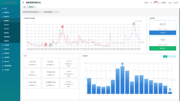 可查看各回路的用能數(shù)據(jù),包括日報周報、月報、季報和年報。支持能耗同比,環(huán)比分析。支持統(tǒng)計自定義時間段的用能情況及導(dǎo)出。