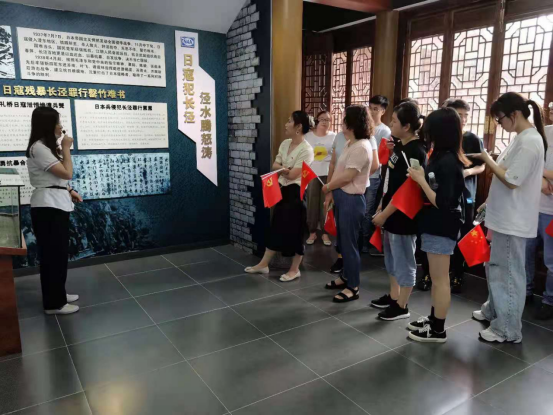 新四軍六師駐地舊址紀(jì)念館位于江陰市長(zhǎng)涇鎮(zhèn)蒲市村蒲墅里紅色文化主題區(qū)。八年抗戰(zhàn)期間,譚震林帶領(lǐng)部隊(duì)駐扎蒲墅里,領(lǐng)導(dǎo)指揮方圓內(nèi)大小戰(zhàn)役上百次,取得了輝煌的成績(jī)。黨員同志通過(guò)參觀紀(jì)念館展品和展板、聆聽(tīng)講解員的講述,進(jìn)一步了解了新四軍六師在江陰等蘇南地區(qū)的敵后抗日游擊戰(zhàn)爭(zhēng)為抗日戰(zhàn)爭(zhēng)勝利作出的重要貢獻(xiàn)。
