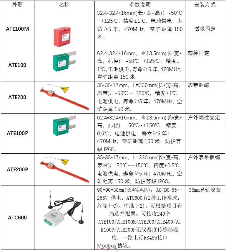 根據上述要求,故此選擇安科瑞的無線測溫產品如下表。