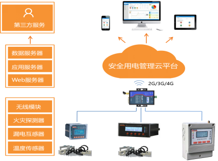 7)通訊功能:具有1路RS485接口,1路2G無線通訊,可以將數據發送到后臺監控系統,實現遠程監控。監控后臺可以是安科瑞Acrel-6000/B電氣火災監控主機,也可以是安科瑞Acrel-6000安全云平臺,或第三方監控軟件或平臺。