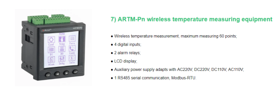 Abstract: ATE series and ARTM-Pn are suitable for monitoring the real-time temperature of circuit breaker contact,cable,busbar in high or low voltage cabinets.