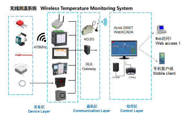 Wireless Temperature Monitoring System is suitable for 3-35kV indoor switchgears, including built-in switchgears, handcart switchgears, fixed switchgears and loop-net switchgears. It is also suitable for 0.4kV low-voltage switchgears such as fixed switchgears and drawer switchgears.