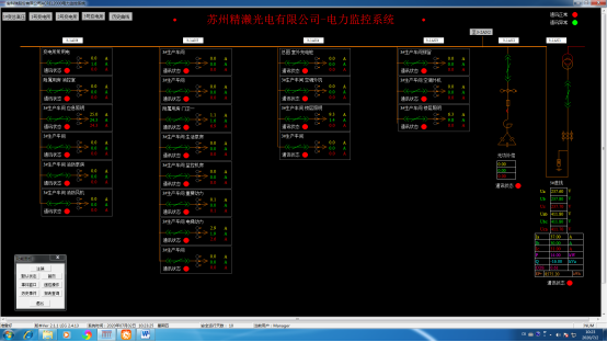 系統依據客戶實際需求進行設計,并實現了一次主接線圖界面顯示;電參量遙測及電參量越限報警;事件記錄;系統運行異常監測;故障報警及操作記錄;電能報表查詢與打印;系統負荷實時、歷史曲線,用戶權限管理等主要功能。