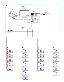 系統通訊結構示意圖,主要顯示系統的組網結構,系統采用分層分布式結構,同時監測間隔層設備的通信狀態。紅色表示通訊正常,綠色表示通訊故障。見圖(4)。