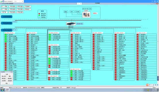 10)網絡拓撲圖:支持實時監視接入系統的各設備的通訊狀態,能夠完整的顯示整個系統網絡結構;可在線診斷設備通訊狀態,發生網絡異常時能自動在界面上顯示故障設備或元件及其故障部位。