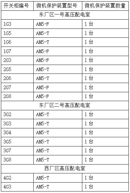 整個配電工程每面高壓柜所設微機保護型號與數量如下: