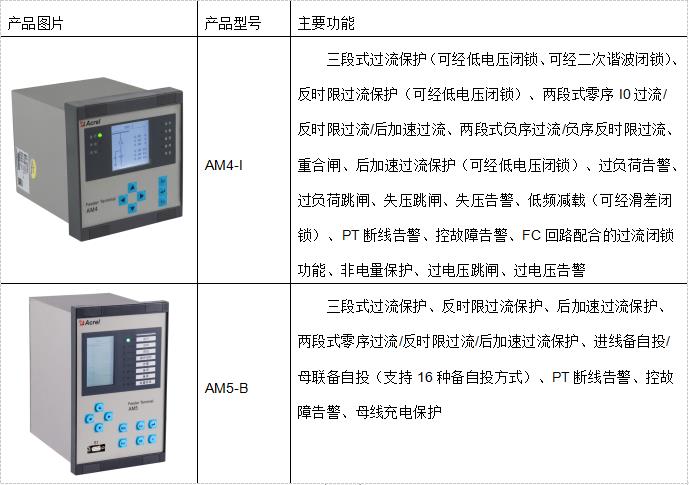 本次針對都安至巴馬高速公路配電工程項目中不同保護對象配置不同微機保護裝置,10kV進線柜、變壓器出線柜均配置AM4-I微機保護裝置;高壓自動轉換開關柜中主供進線配置AM5-B備自投保護裝置,實現兩路進線的自動切換功能。這兩款微機保護裝置主要通過以下保護功能實現對高壓柜的設備運行情況實時監視和保護: