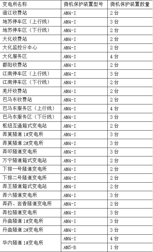 整個都安至巴馬高速公路共有59個變電所,每個變電所所設微機保護型號與數量如下: