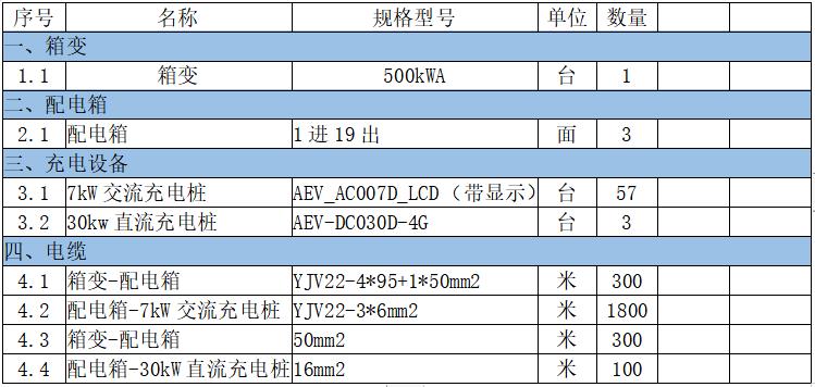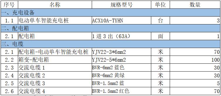 3.3.1充電設備及材料配置表: