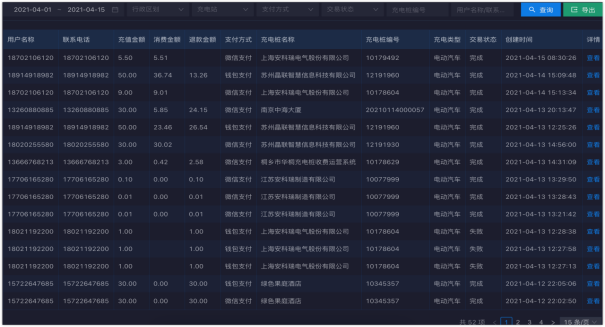 交易管理包括賬戶信息、充電記錄、交易流水、充值記錄等功能