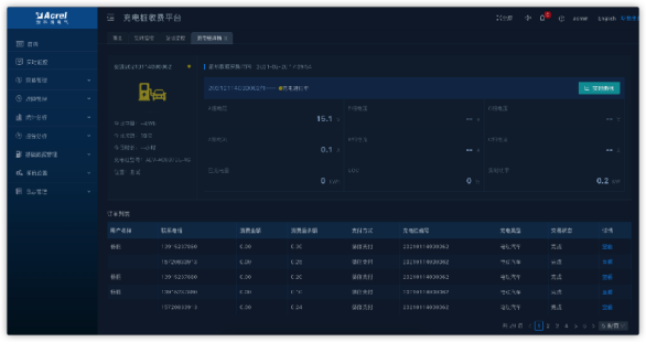 ④充電站監控:可以按站點名稱進行篩選,顯示站點詳情、充電槍列表、統計訂單信息、故障記錄