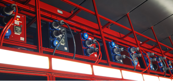 本現場采用了二路母線供電的方案,此種方式減少了始端箱數量,母線整體性更強。但是單路母線負荷更高。另外,母線需要跨過冷通道天窗,需要單獨設計。跨通道部分也可采用線纜做轉接。同時由于母線槽需要承擔整個模塊的負荷,因而同等情況下,其額定容量是四路母線方案的兩倍。