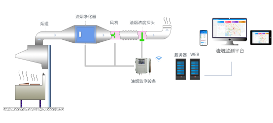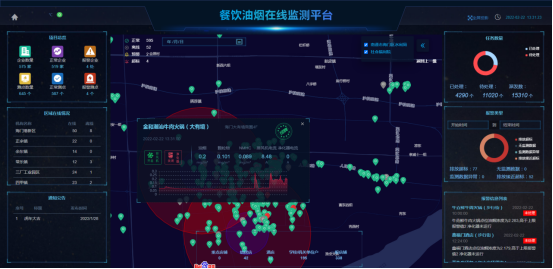 餐飲業(yè)油煙是大氣中揮發(fā)性有機(jī)物(VOCS)和PM10的主要來源之一。近年來隨著環(huán)保治理的加強(qiáng),省市區(qū)不斷強(qiáng)化餐飲經(jīng)營商全覆蓋安裝油煙凈化器工作,但在監(jiān)管上仍存在一些問題和漏洞。安科瑞餐飲油煙監(jiān)測平臺通過采集餐飲油煙處理設(shè)備運行狀態(tài)和油煙排放的濃度數(shù)據(jù),自動對超標(biāo)排放及異常企業(yè)進(jìn)行提示預(yù)警,監(jiān)管部門可迅速進(jìn)處理,督促餐飲企業(yè)整改設(shè)備,并定期清洗、維護(hù),實現(xiàn)減排環(huán)保,不擾民等目的,從傳統(tǒng)人防轉(zhuǎn)變?yōu)榧挤溃?/span>很大降低人力成本,方便督查部門統(tǒng)一管控數(shù)據(jù)。
