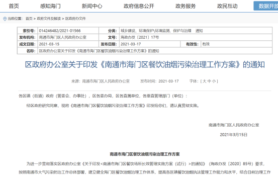 《海門區(qū)餐飲油煙污染治理工作方案》